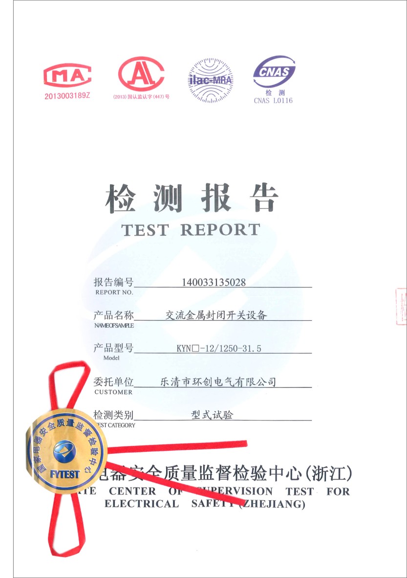 KYN□-12/1250-31.5檢驗(yàn)報(bào)告