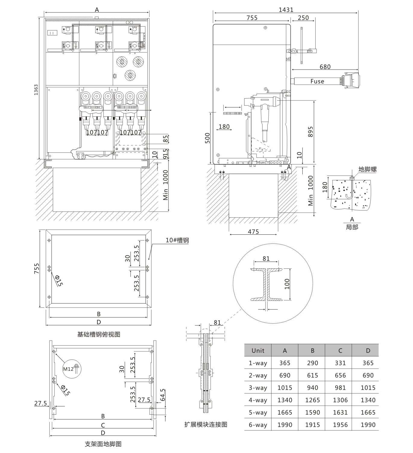 開關(guān)柜為模塊化單元模式,可根據(jù)不同用途進(jìn)行組合;由固定式單元組合與可擴(kuò)展型單元兩大類,滿足各種變電站對緊湊型開關(guān)柜靈活使用的需要。