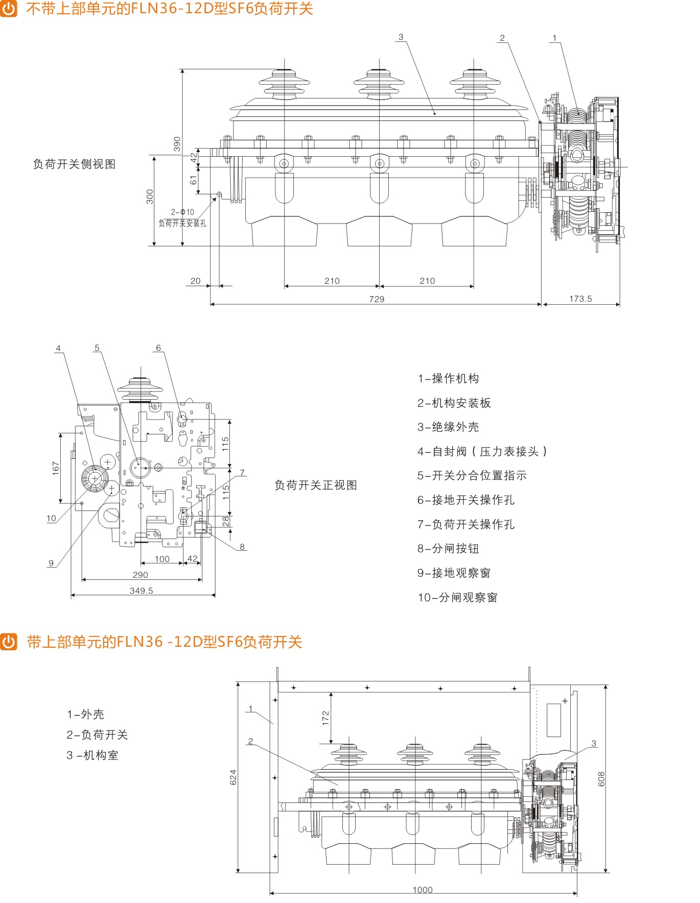 FLN36-12D系列SF6負(fù)荷開關(guān)是額定電壓為12KV的開關(guān)設(shè)備,采用SF6氣體作為滅弧和絕緣介質(zhì),開關(guān)內(nèi)部有合閘、分閘和接地三個工位,具有體積小,安裝使用方便和環(huán)境適應(yīng)性強(qiáng)等特點(diǎn)。