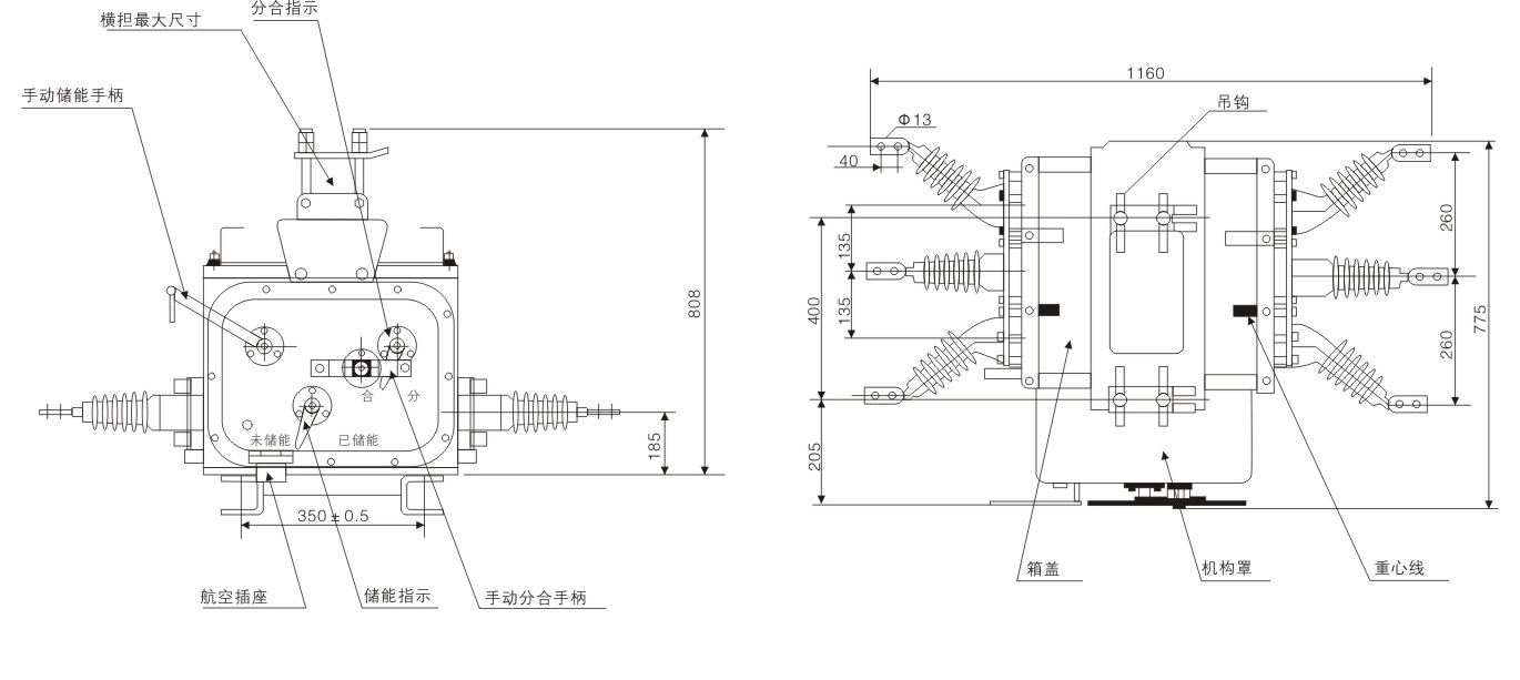 ZW20B-12型戶外柱上高壓真空斷路器為額定電壓12kV、三相交流50Hz的戶外高壓開關(guān)設(shè)備。主要用于開斷、關(guān)合電力系統(tǒng)的負(fù)載電流、過載電流及短路電流。適用于變電站、工礦企業(yè)及城鄉(xiāng)配電網(wǎng)作保護(hù)和控制,特別適用于操作頻繁的場所和城網(wǎng)自動化配電網(wǎng)絡(luò)。本產(chǎn)品與控制器配套,能滿足配電自動化系統(tǒng)要求,并能可靠而有效地完成傳統(tǒng)的重合器功能。它采用成熟的箱式密封結(jié)構(gòu),內(nèi)部充以SF6氣體,具有良好的密封性能,使之不受外界環(huán)境影響,是一種免維護(hù)產(chǎn)品。其彈簧操動機(jī)構(gòu)采用直動鏈條主傳動和多級脫扣系統(tǒng),動作可靠性高,是柱上斷路器的佳品。